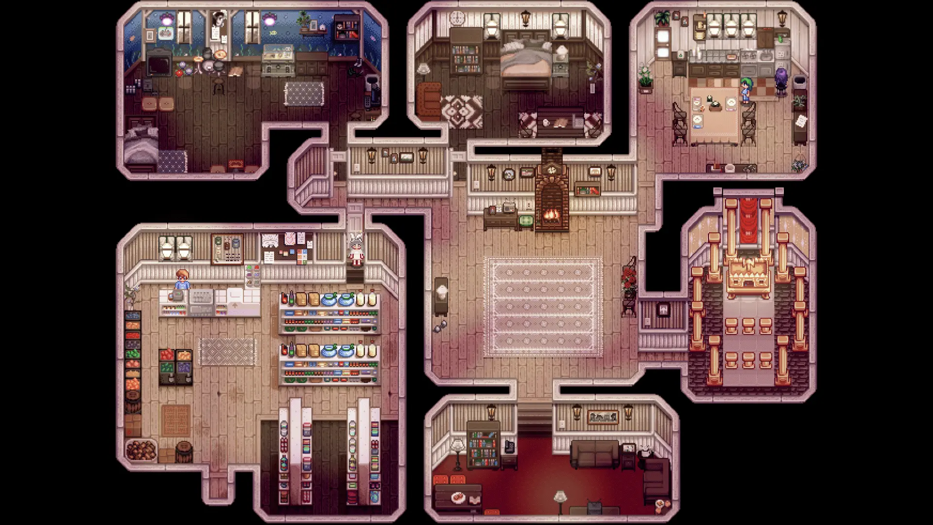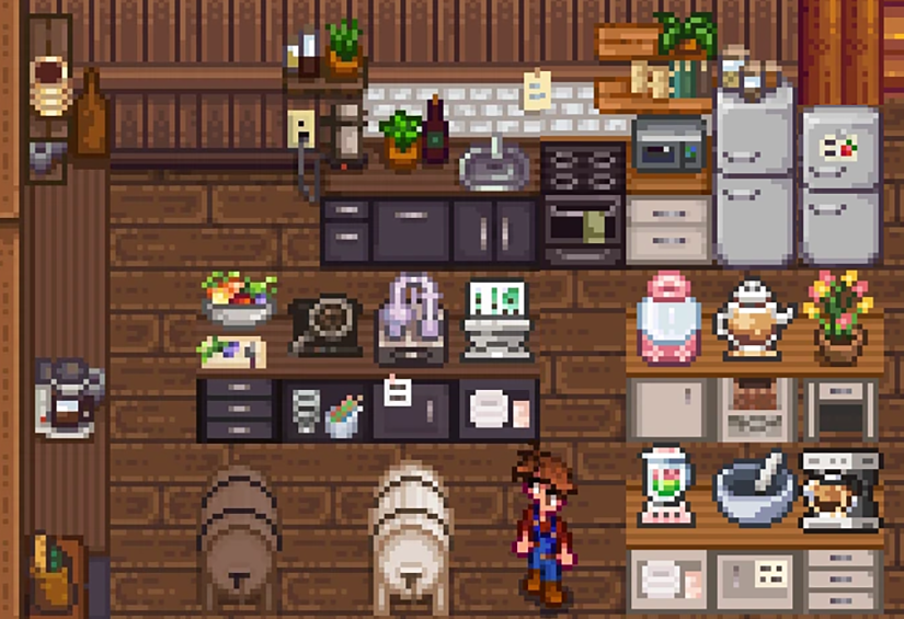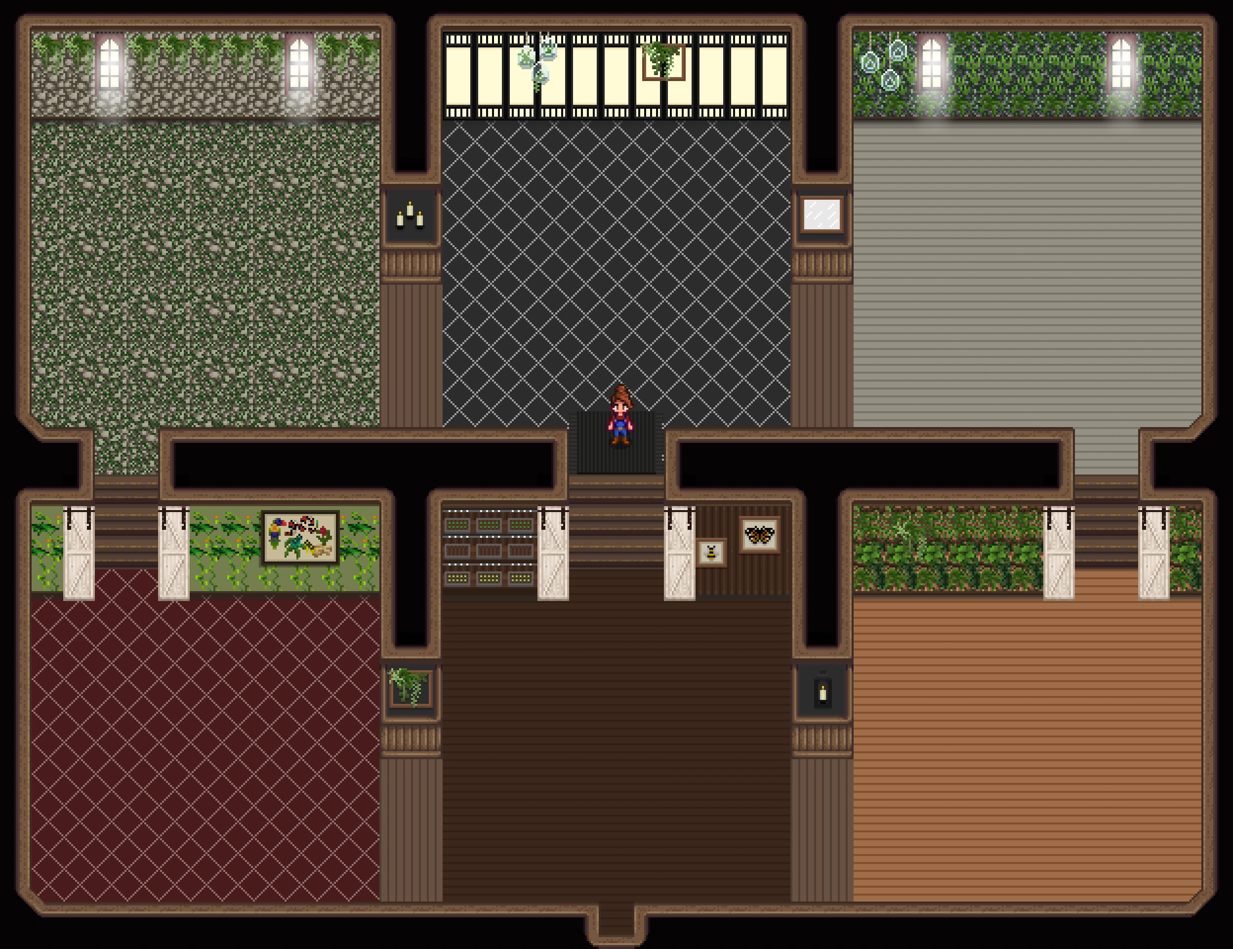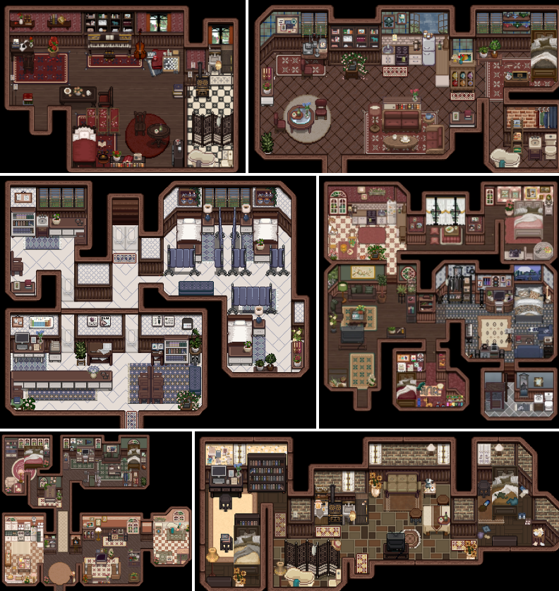 | Lnh's Stardew Shed ✔ 1.6 🆗 : 직사각 구역이 이어져 정사각의 오밀조밀한 느낌의 내부로 꾸밀 수 있는 헛간. |
