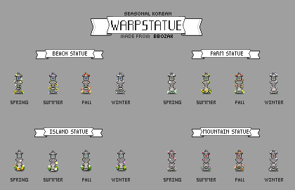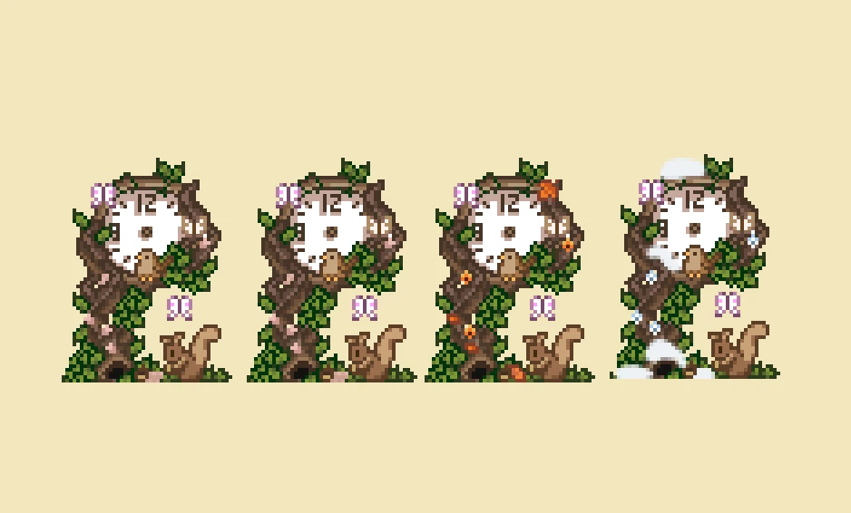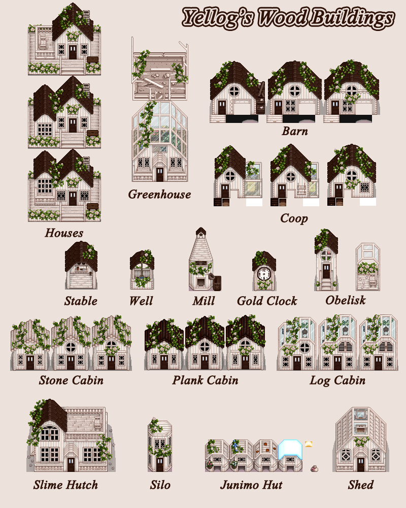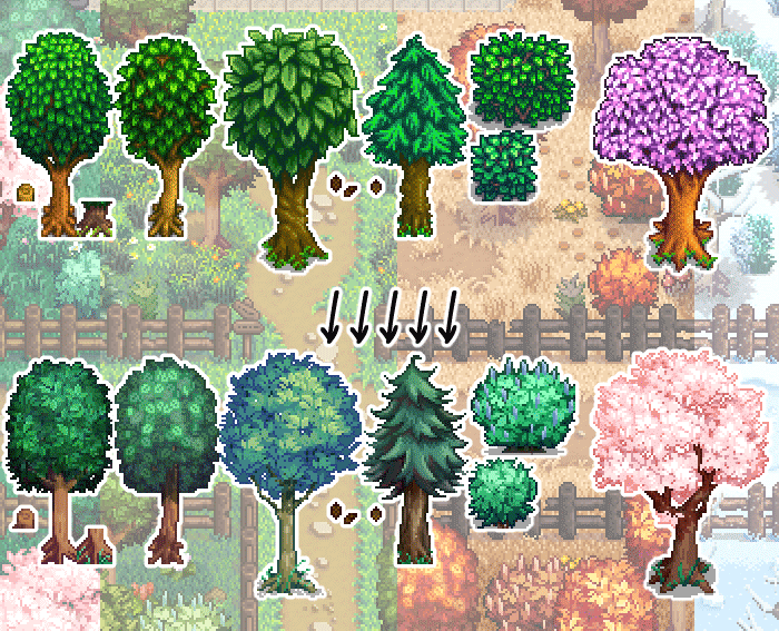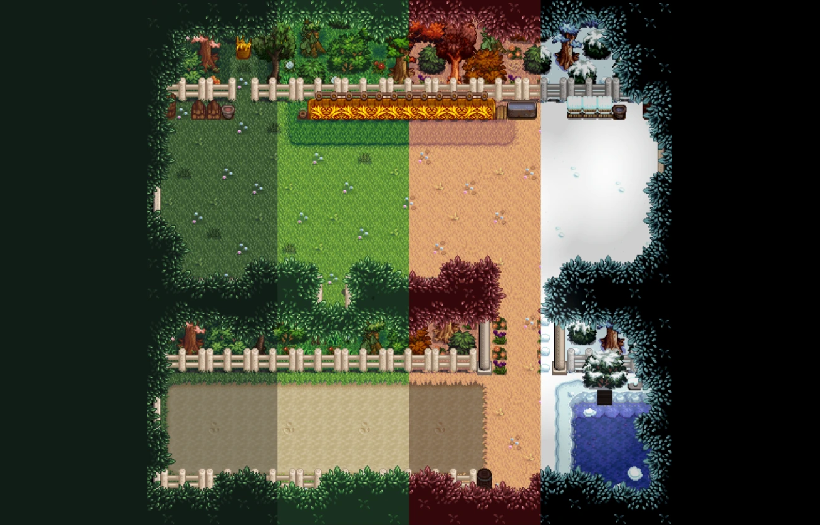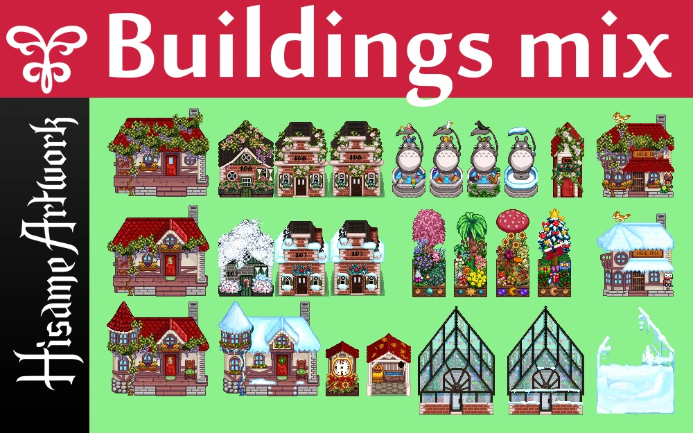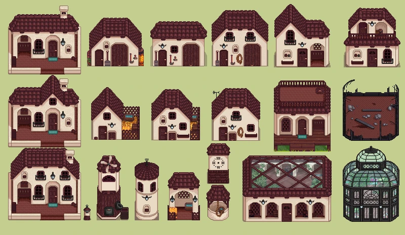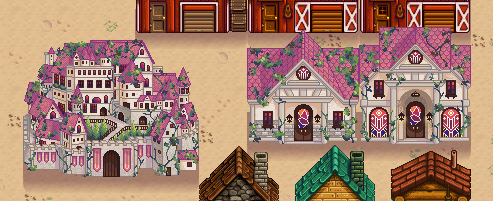 | (▶ CLICK) V1 ✿ 요리, 농부, 동물 몬스터, 말 트랙터: 필수모드/기능모드/편의모드 - COOK • Farmer • Animals / Monster • Horse / Tractor - 팁 ❅ (▶ CLICK) V2 ❀ 인테리어, 가구, 제작기계, 오브젝트 도구, 커서 이벤트: TileSheets (Fence / Walls & Floors / Maps) • TileSheets (Furniture) • TileSheets (Craftables) • Object (springobjects / tools) • LooseSprites (Cursos / event) ❅ (현재글) V3 ✿ 맵 농장, 집 하우스, 타운 마을 인테리어, 잔디 지형 나무, 마을 주민: Maps (Farm Type / farmhouse) • Maps / Buildings (Farm / townInterior) • Maps (outdoorsTileSheet / bushes / fruitTrees) • NPC |