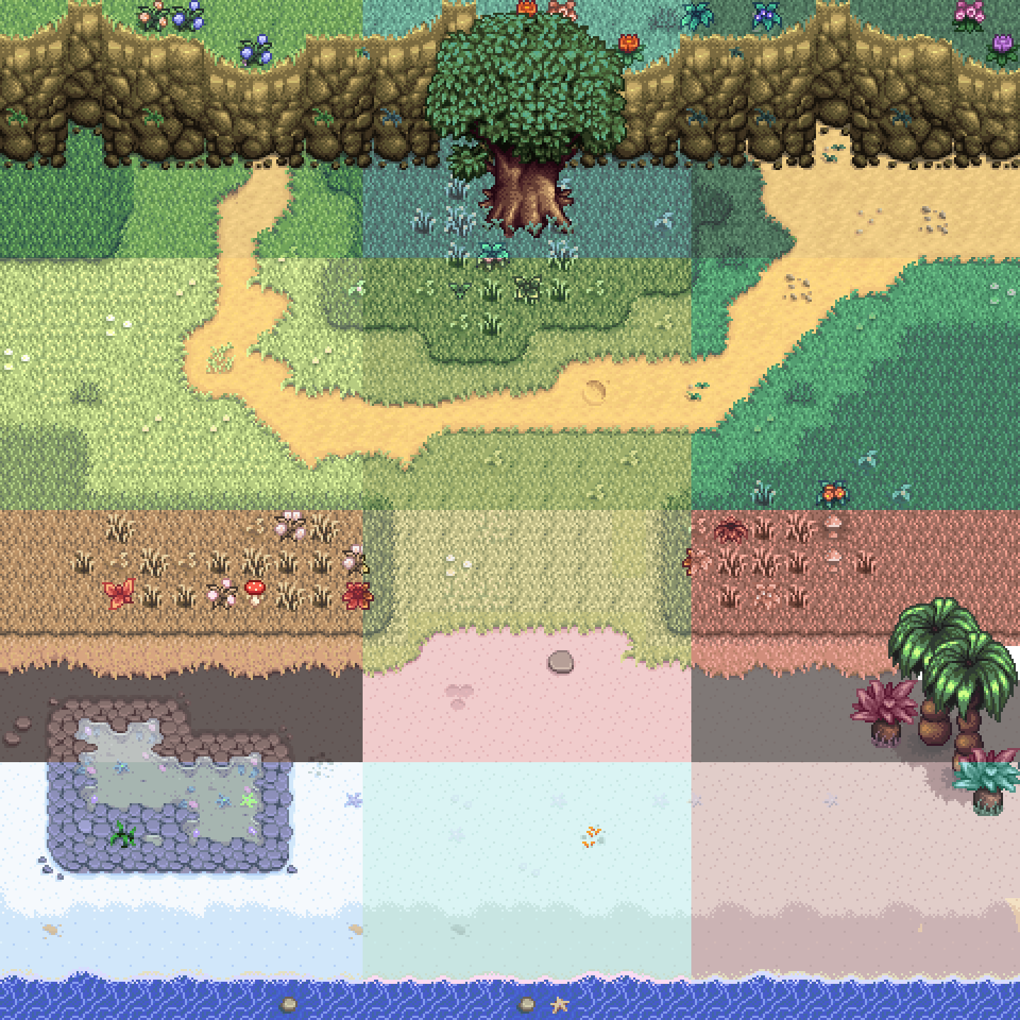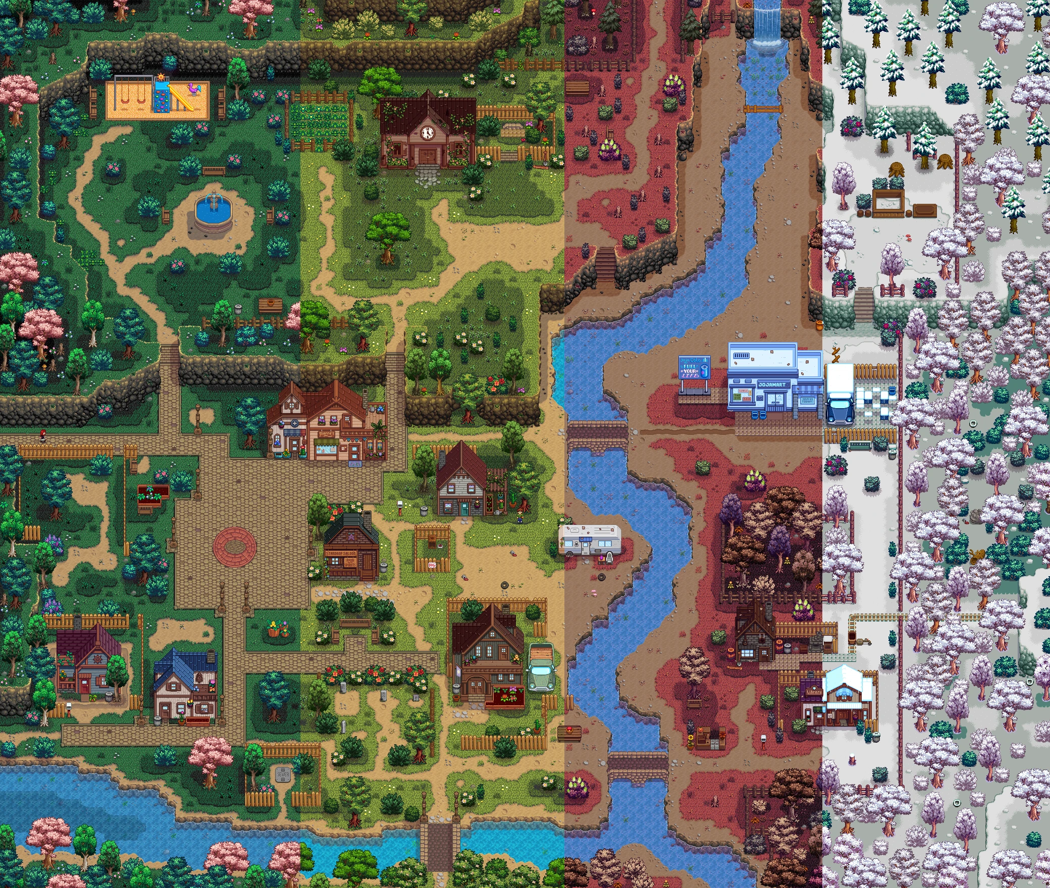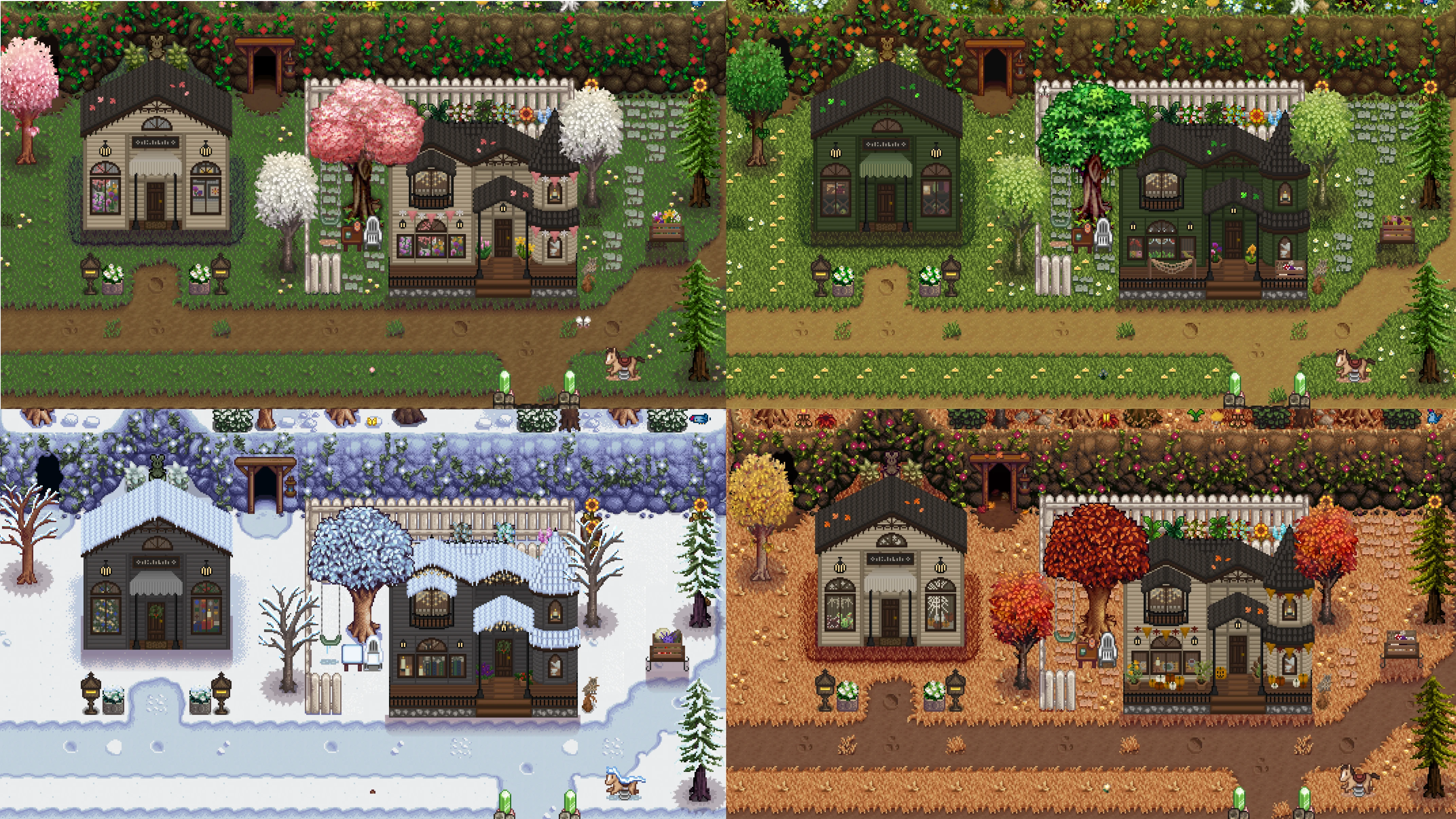 | (▶ CLICK) V1 ✿ 요리, 농부, 동물 몬스터, 말 트랙터: 필수모드/기능모드/편의모드 - COOK • Farmer • Animals / Monster • Horse / Tractor - 팁 ❅ (▶ CLICK) V2 ❀ 인테리어, 가구, 제작기계, 오브젝트 도구, 커서 이벤트: TileSheets (Fence / Walls & Floors / Maps) • TileSheets (Furniture) • TileSheets (Craftables) • Object (springobjects / tools) • LooseSprites (Cursos / event) ❅ (현재글) V3 ✿ 맵 농장, 집 하우스, 타운 마을 인테리어, 잔디 지형 나무, 마을 주민: Maps (Farm Type / farmhouse) • Maps / Buildings (Farm / townInterior) • Maps (outdoorsTileSheet / bushes / fruitTrees) • NPC |