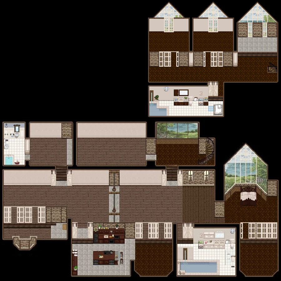 거대한 집 내부 : 아주 큰 구역들이 이어지는 집 내부. |