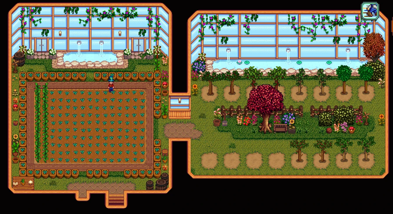 | Lnh's Four Seasons Greenhouse | [CP] 지하정원이 있는 온실 리텍스쳐 | Oasis Greenhouse | [CP] Junimo Garden |