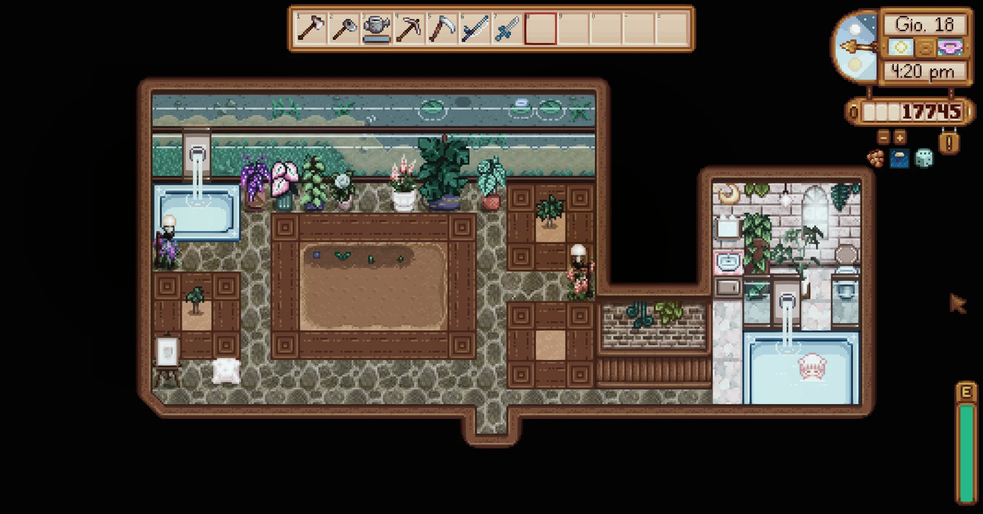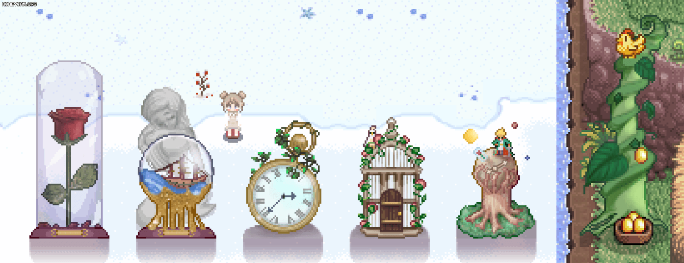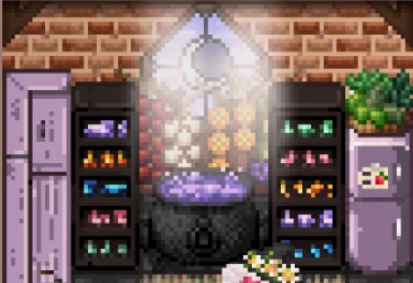 Secret Greenhouse ✔ 1.6 🆗 : 로빈에게 문을 구입하여 비밀온실을 추가할 수 있다. 총 3단계의 아주 작고 휴식을 취할 수 있는 욕조가 있는 온실. |