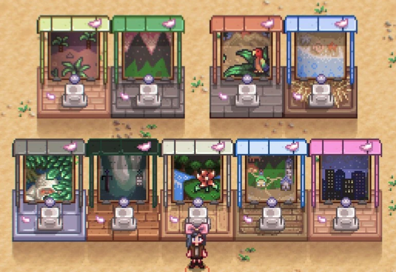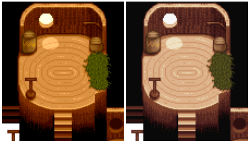 농장 동굴을 넓은 온천으로 바꿔주는 모드 : 동굴 종류는 버섯, 과일 등 상관 없지만 과일 동굴일 경우 (방치 시) 온천 아래까지 과일이 생긴다. 관리엔 버섯이 편하지만 채집의 재미를 추구하기엔 과일이 좋은 듯. |