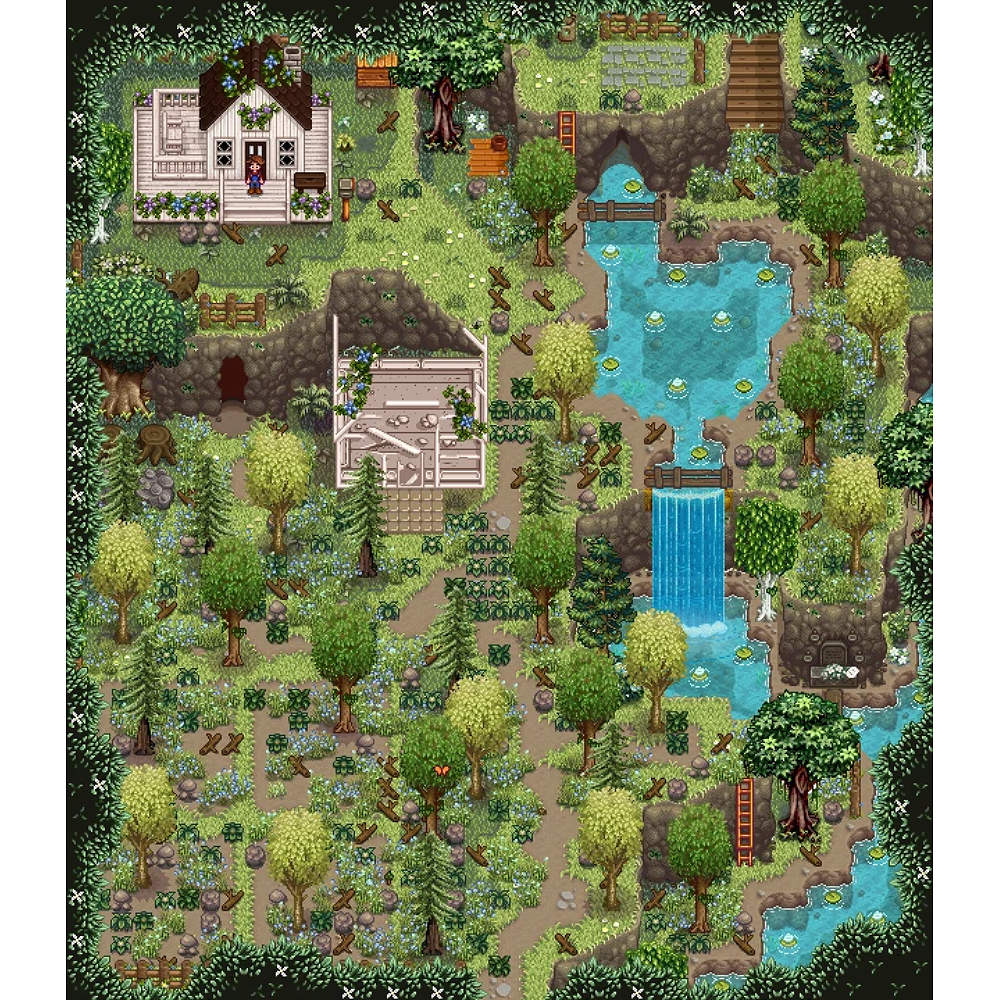 Flowering Falls Farm ✔ 1.6 🆗 : 적당히 작지만 꾸밀 구역이 나누어져 있는 소규모 농장. |