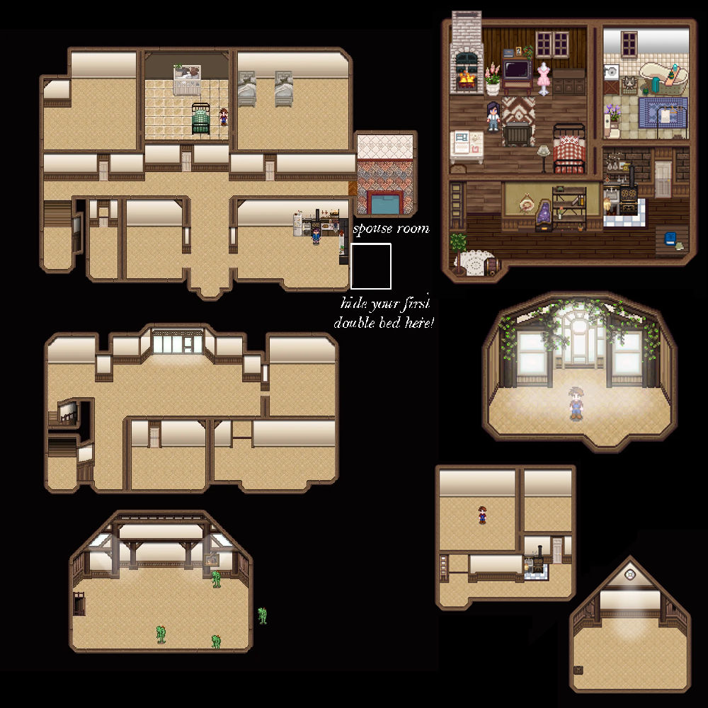 | Lnh's First FarmHouse | Bigger Farmhouse Map | Lnh's Ginger Island House | Lune Ginger Island Farmhouse |
