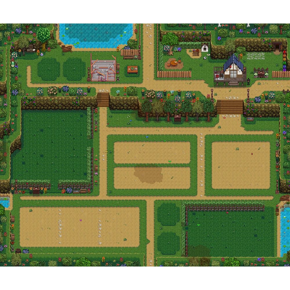 | 조금 더 큰 표준 농장 ✔ 1.6 🆗 : 기본 농장과 비슷하지만 조금 더 큰(?) 구역이 정갈하게 나누어진 표준스타일 일자 연못 농장. |